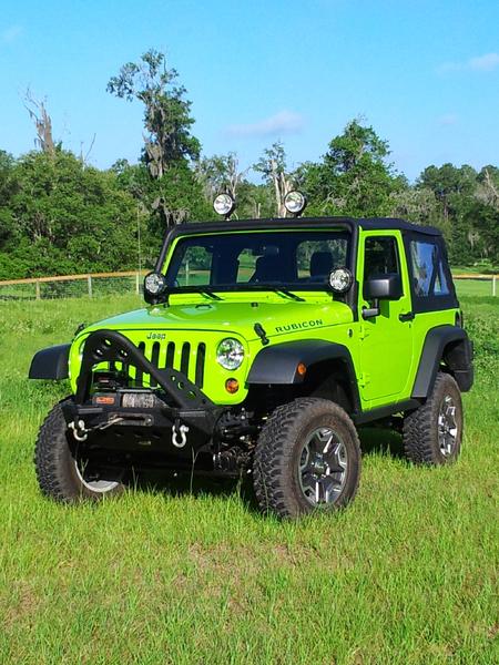 After installing my Rusty's 3.25" springs and shocks, Front bumper, Winch, Windshield bar and lights