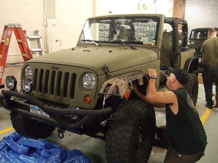 Here are some shots of RubiConVict's JK which he decided to have ChevyM14 rattle can olive drab