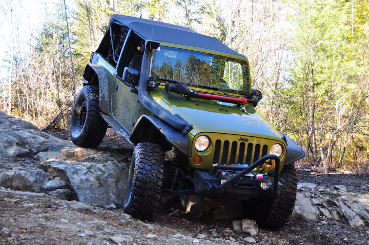 This is mine. I got my 37" Xtreme MT's mounted yesterday. I have Unlimited coils with 1" coil spacers (~2.5" lift). I trimmed the rear seams and rock rail. I have the fenders off in this picture becuase I'm still working on them. I'm making a stubby front bumper and I already made a low profile stubby rear. Pay no attention to my poser McDonald's parking lot iPhone pictures.