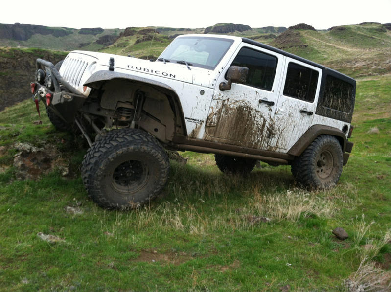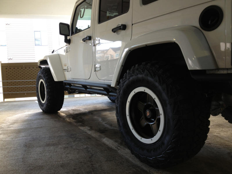 Oh, and here's mine. RK 2.5 max travel, toyo MT 35x13.5x15 and cut stock flares. I also trimmed the rubi rails and pinch seam a bit.