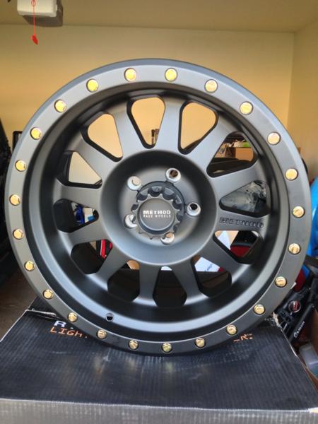 Double Standards (with center caps removed) sitting on 37" KM2s.