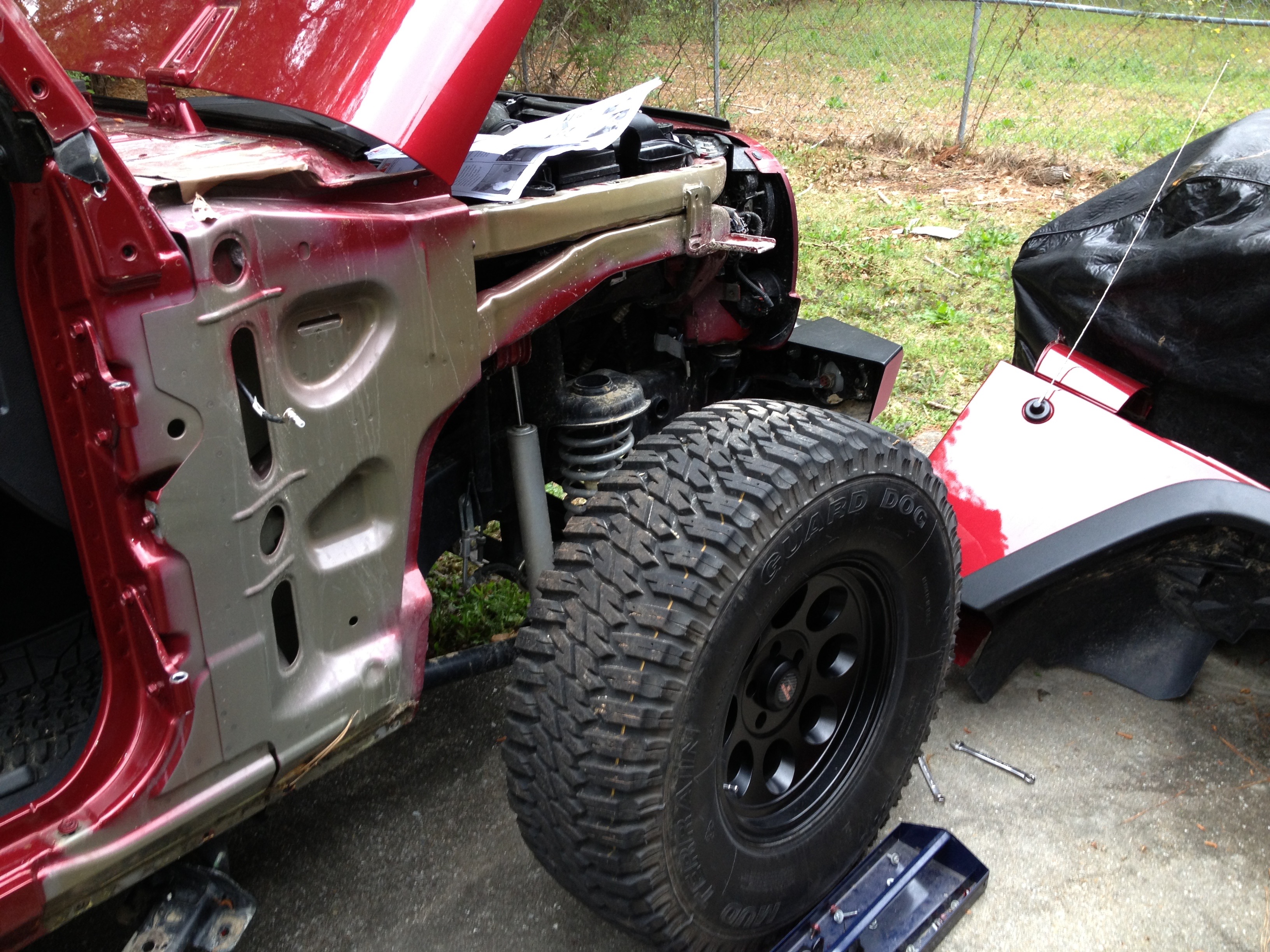 I think I'm going to do the side rear hinge mount over mounting to that weak sheet metal on the side of the Jeep. I had to take off the side with the antenna to install my snorkel and I have to say that metal for the front corner panel is some 12 gauge crappy sheet metal. Once I get my Teraflex hinge I'll get the RotoPaX mount add on they sell.