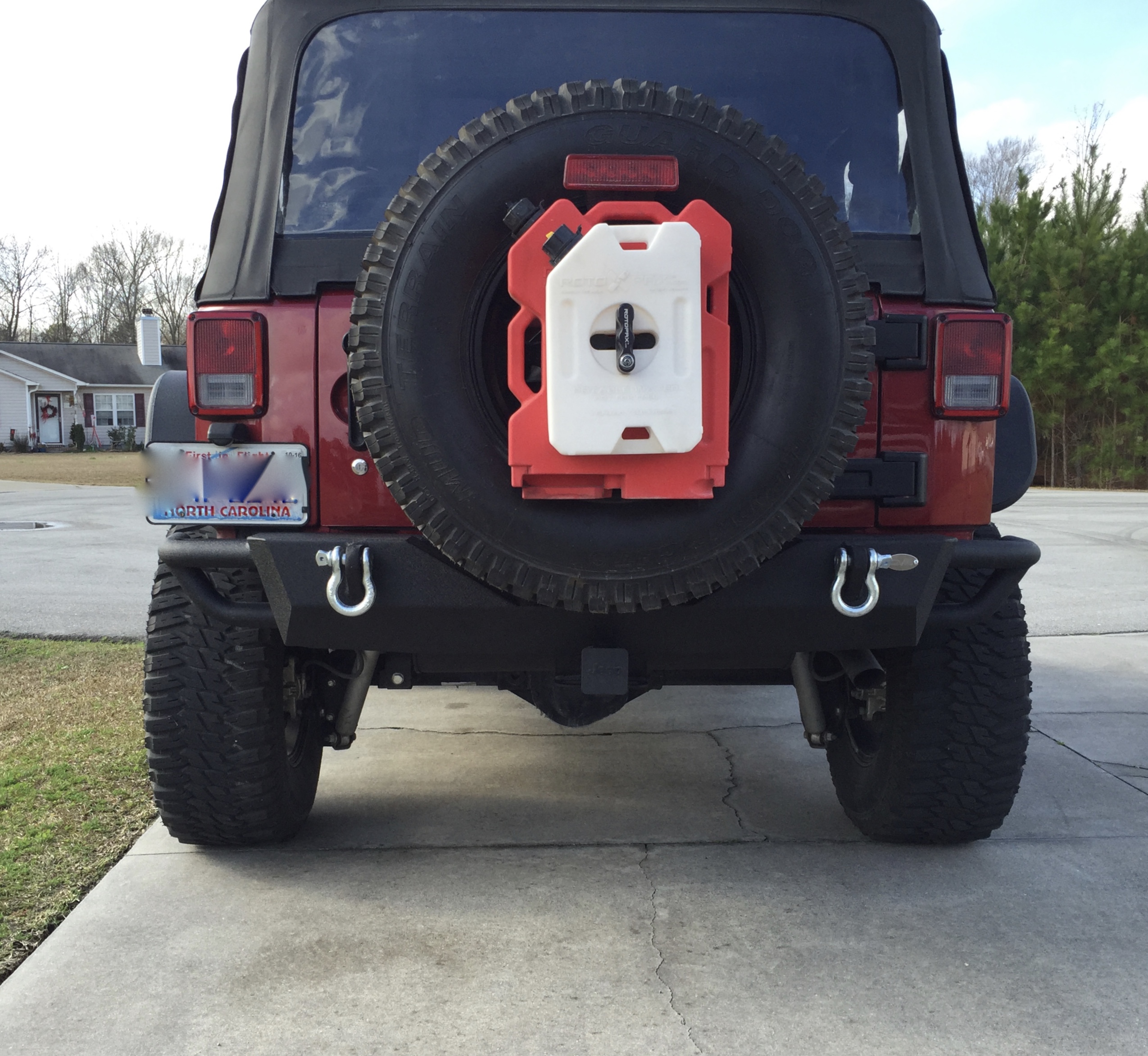 I've got the MORryde HD hinges/tailgate reinforcment/large spare carrier on my JK. It reinforces more of the tailgate than other "tailgate hinge/reinforcement" products on the market, and the hinges are greasable/rebuildable, which most others aren't. And it's more affordable. Oh, and it has options for gear, such as the Rotopax mount in the photo below, and a HiLift mount.