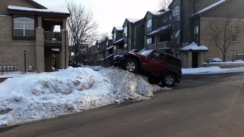 My little dude cleaning the snow off my Jeep in ontario, Canada!