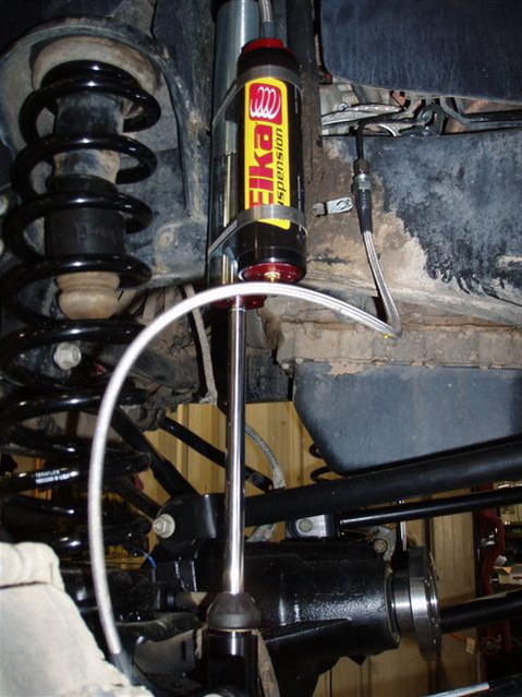 You would have to switch to a shorter travel 2.5" ELKA to use those. So I wouldn't suggest it, however I would suggest getting some rear shocks skids from EVO or from ORW ( I have these with my ELKA's).