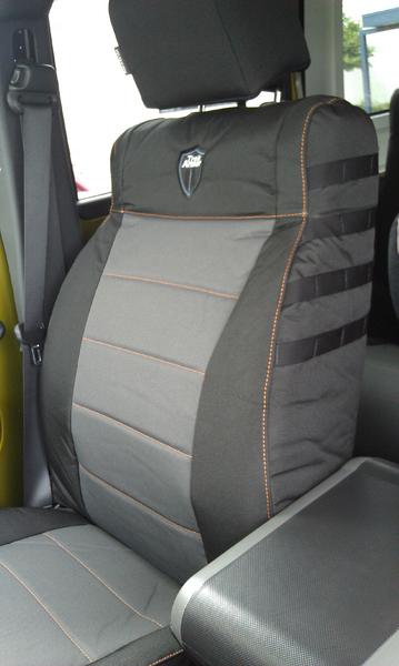 I spent months looking into seat covers. I wanted weather resistant, but not neoprene. It wasn't until I emailed WoL though that I got a heads-up to Trek Armor. I checked out their site but I had some questions so I called the number. I talked to Mitch, who was very knowledgeable about seats and seat covers and decided to order with him almost immediately. Got front and rears, black outer with gray inner, with custom orange stitching to match my Mountain Edition color scheme. Got them in the mail late last week and couldn't be more impressed. The box was light, so I was a bit skeptical, but after opening and getting my hands on the covers, they are extremely sturdy. Got them mounted in the Jeep, took about an hour by myself, and they look AWESOME! They are super rugged and the strapping system on the back of each seat will definitely come in handy when wheeling and looking to tie stuff down. Each front seat cover came with a small bag that mounts to the back of the seat and the rear 60/40 bench cover has a larger bag that mounts the same way. This was a huge selling point when I looked at their product. The material doesn't stretch, so putting the covers on was the only downside, as it took some muscle. But, once they were on, they fit like a glove! So first impressions couldn't be better. Definitely a 10/10. Going to be calling Mitch to see if he can make some for my wife's Subaru! I'll be posting up pictures later, so stay tuned if you're interested in covers to keep your seats nice while the top is off this summer. You can PM me too if you have any questions about mine.