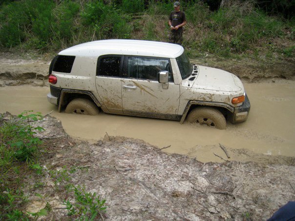 Shortly before that one of my buddies in his FJ (aren't they so cute!?) Actually suprised the crap out of us with his stock rig on street slicks.