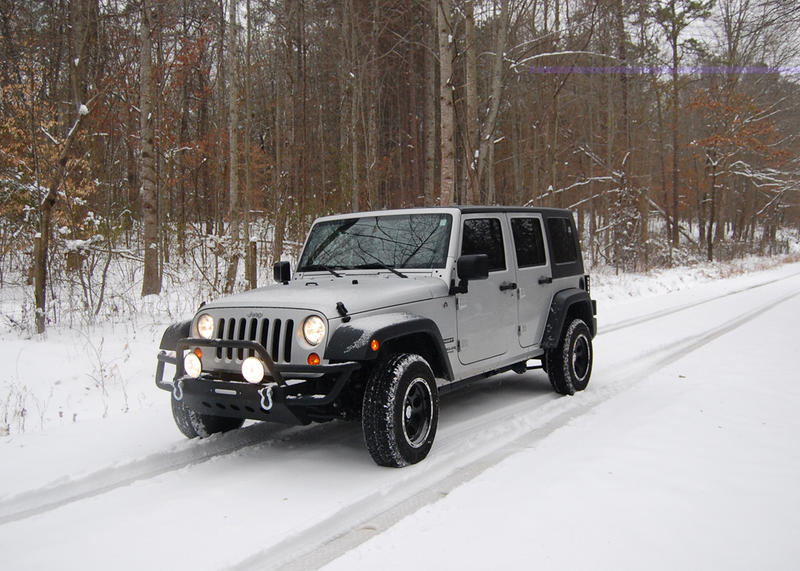 Had lots of fun this weekend! I had my procomp wheels installed and I installed my new Smittybilt SRC front bumper, Hella 500 fog lights, Rugged Ridge floor mats and headrest grab handles. And then after all of that I got to play in the snow/ice here in GA! Woo Hoo!