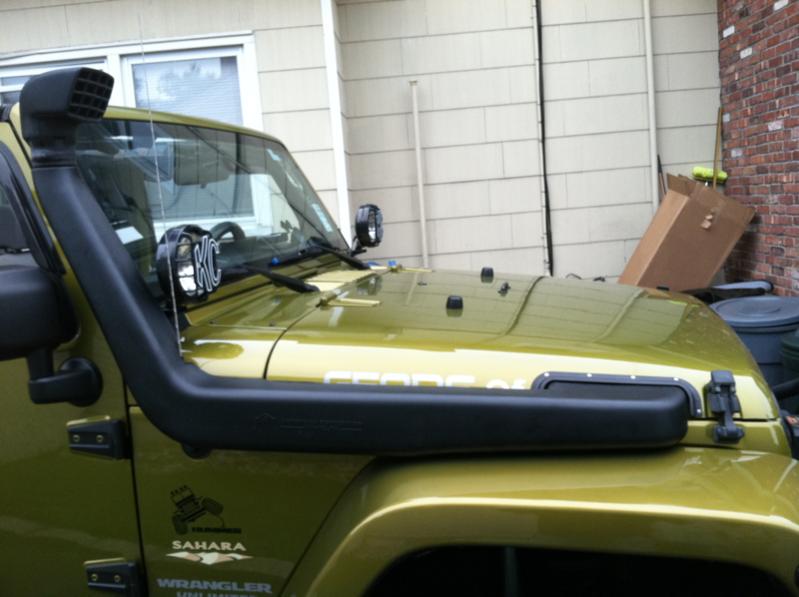 I finally ordered my AEV snorkel, & best part about it... I installed it my self. Body shop wanted $300.00, yeah ok, for what, a cut on the side of the hood, cause everything else is simple. Sad part about it is that I had to eliminate my afe cold air intake.. but it's all good though. My next project will be rock guards & flat flares.
