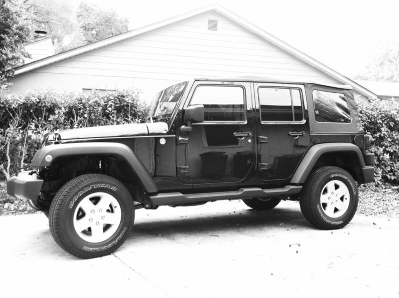 I put a TF 2.5" Coil lift on my 2012 JKU. My new wheels and tires come later this week, so I had to use my stock wheels and leave out the rear sway bar links for the time being...