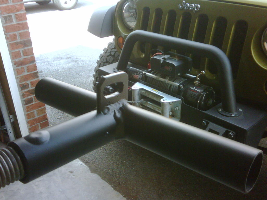 I've read where people have had their T-bars loosend unknowingly. So I welded on a tab to my OR-Fab tire/can carrier so i could lock down the tired and the T-bar.