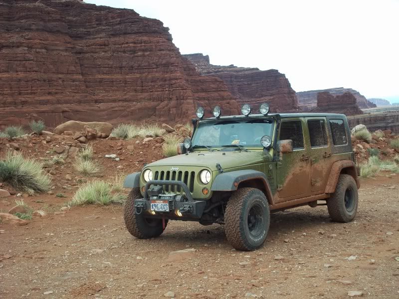 And here, you can see a year later with the small leveling kit from Teraflex and the same tires... just enough room and doesn't rub when wheeling.
