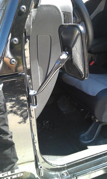 Doors off, mirrors are on. So far, they have not moved, they don't vibrate, they give me visibility, and look like they were made for my Jeep. I have not gotten up to interstate speed, but I have gotten up to around 50-55mph.