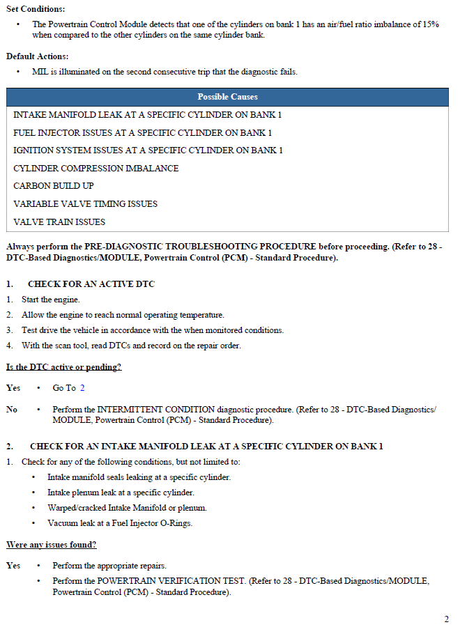 Is inspecting the fuel injectors the logical next step? Should I request another course of action?