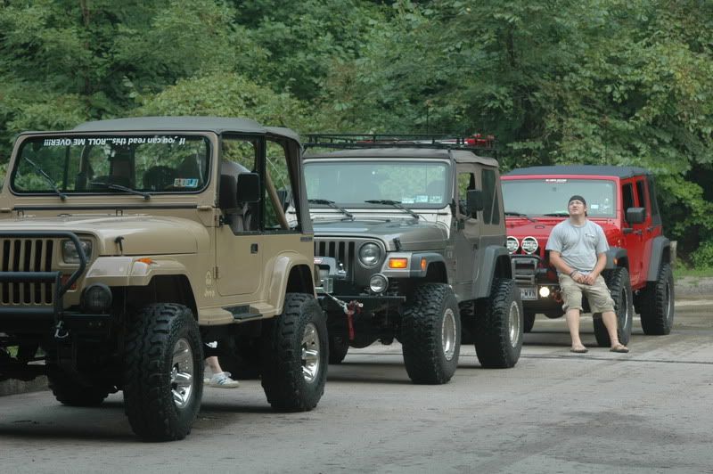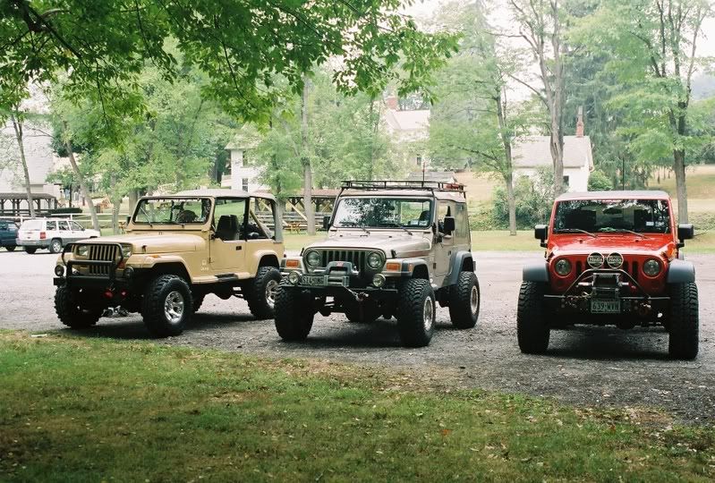 This is a pic of my brother's(who lives in P.A.) '88 YJ, my dad's TJ, and my JK in a li'l amish village called Volant