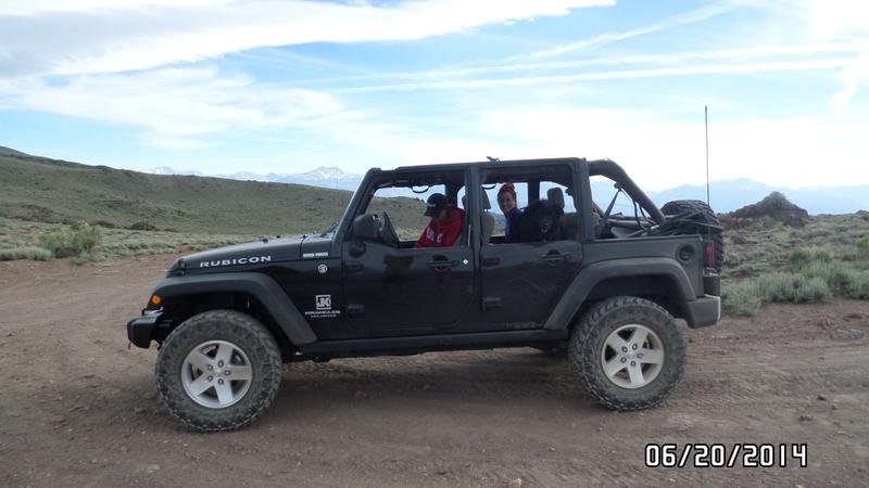 And my friend's 2012 with 33" Duratracs, 17" stock wheels, wheel spacers and a 2.5" coil lift next to my Jeep on 35" Duratracs with 16" wheels and a 2.5" coil lift ...