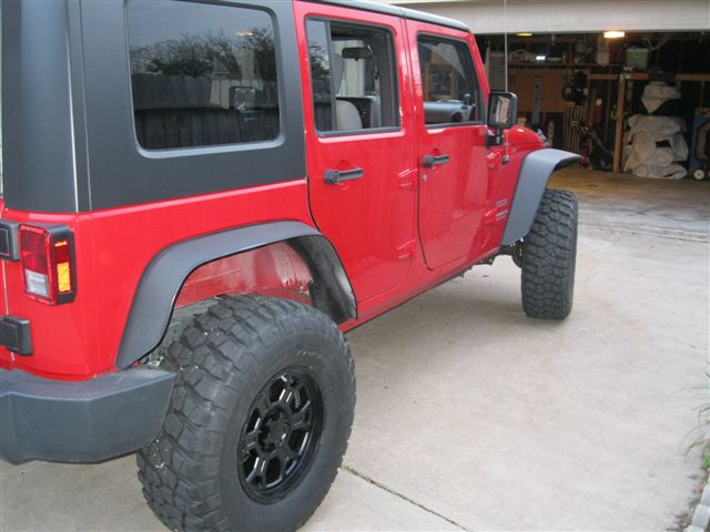 Makes rooms for 35" x 12.5" BFG Mud Terrain KM2's on V-Tec Raptor 17 x 9 matte black rims!!!!