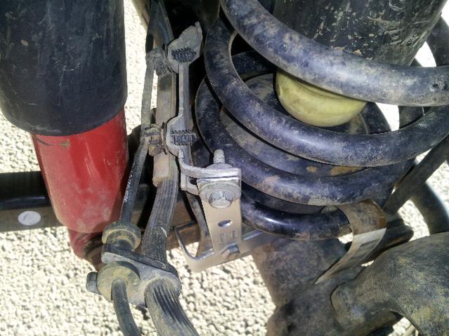 Do you have any concern over the brake lines being pinched by the spring when it is compressed? Some guys who have removed the bracket have loosely tie wrapped the brake line to the shock to eliminate this concern.