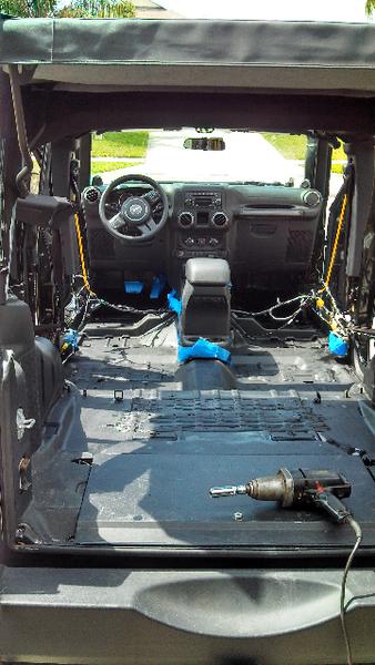 I installed that lock box yesterday on my 2011 JKU , I didn't have that cross member to deal with. But I did that that plug bracket to remove and reroute the wires. While I was at it I took all the seats out, carpet and Duplicolored the tub. Man, those seat bolts where a pain. Glad both projects are done now.