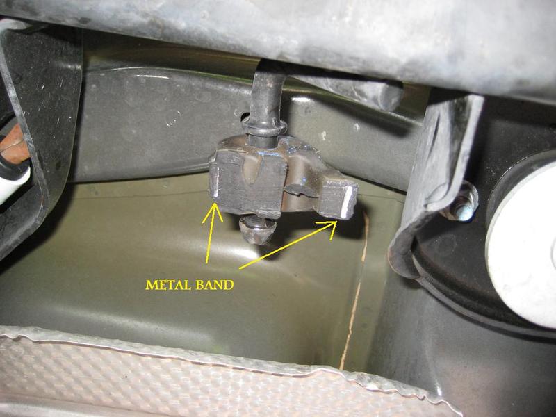 1. With a Sawzall, cut the band of the passenger side muffler isolator.