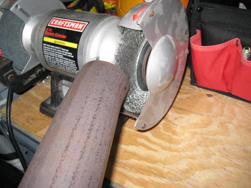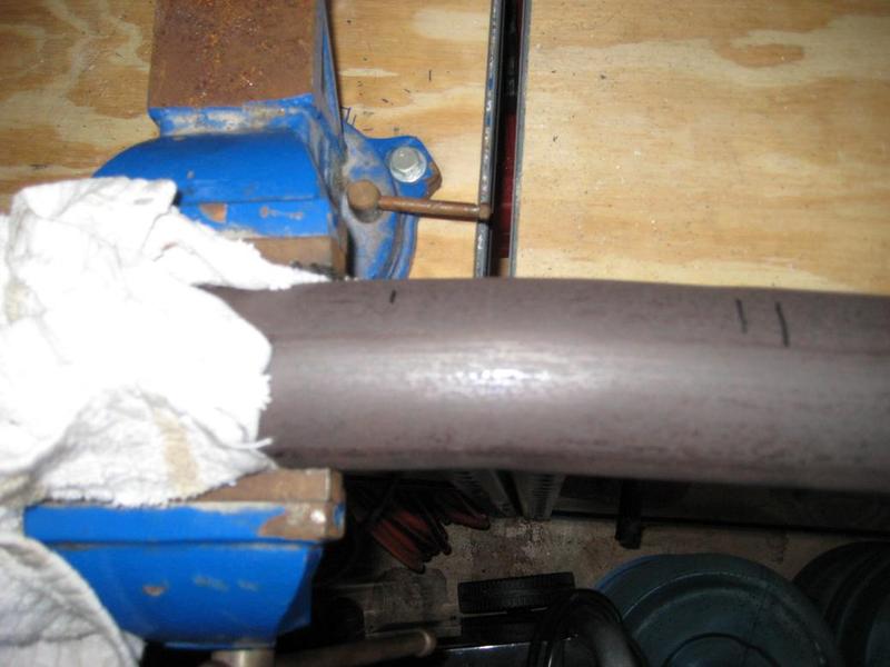 7. Take the exhaust tubing to a work bench and cut the tube at your 4 ½” (or ½” mark if you are using an 18” muffler). I used a Sawzall and a vice, but a pipe cutter, hack saw, or similar tool will work.