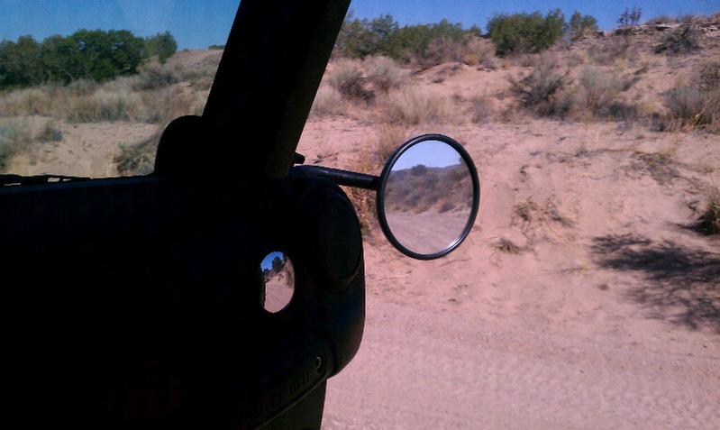 Picked the mirror up from the local auto part store, I plasti dipped the back black to match my Jeep. It does pretty good at highway speed, shakes a little but not that bad. I'm sure if I would just shorten the all thread the shaking would stop.