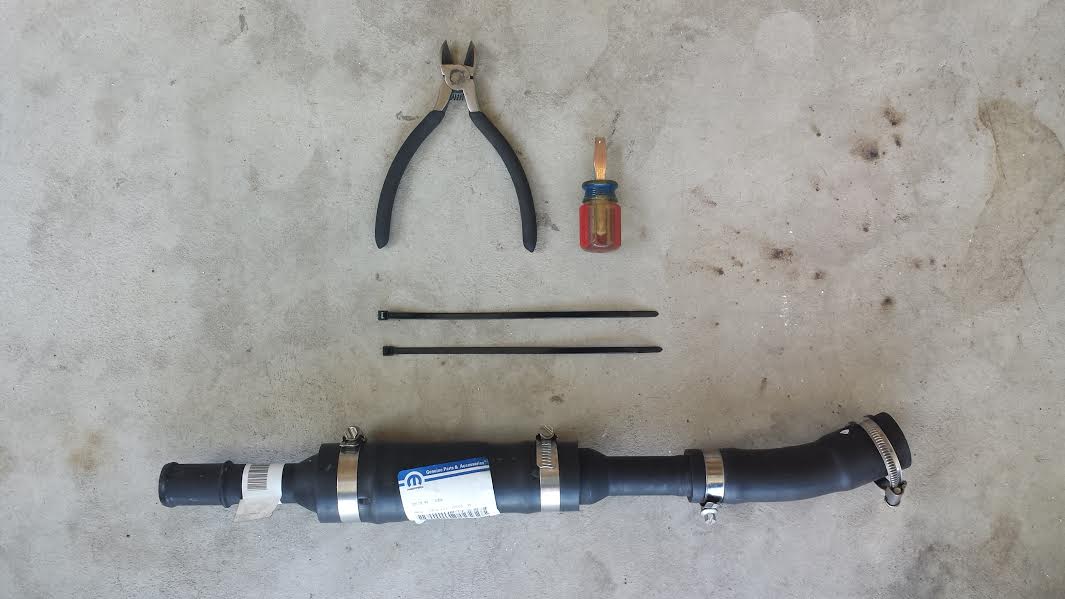 What you'll need... A pair of wire snips, a stubby Phillips screwdriver, 2 zip-ties, and the new fuel fill tube (part number CNNNX321AC). The TSB calls for 2 "tie straps" part number 06016076 but these are simply zip ties.