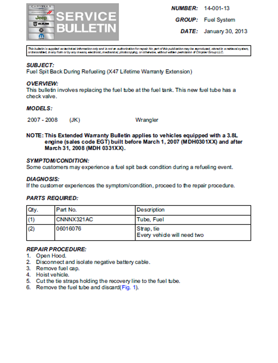 I have been getting spit back when I fill my Jeep so I took it to the dealership to cash in on the "Lifetime Warranty" replacement for the fill tube. My Jeep originally came from Canada and when the dealership saw that, they denied me coverage because of reasons. It's my understanding that if they were to do warranty work on a Jeep originating from Canada, the Earth would rotate off of it's axis and plummet into the Sun. So I decided I would replace the part myself.
