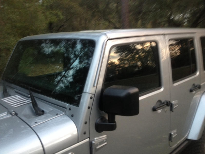 Pictures of rails installed. They do NOT interfere with door opening or Freedom Top removal. I'll keep you posted on how well they work.