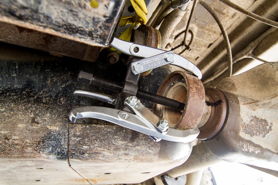 Now for the underneath portion. Mark the driveshaft and pinion flange with a permanent marker or some paint for reference when we reassemble it.