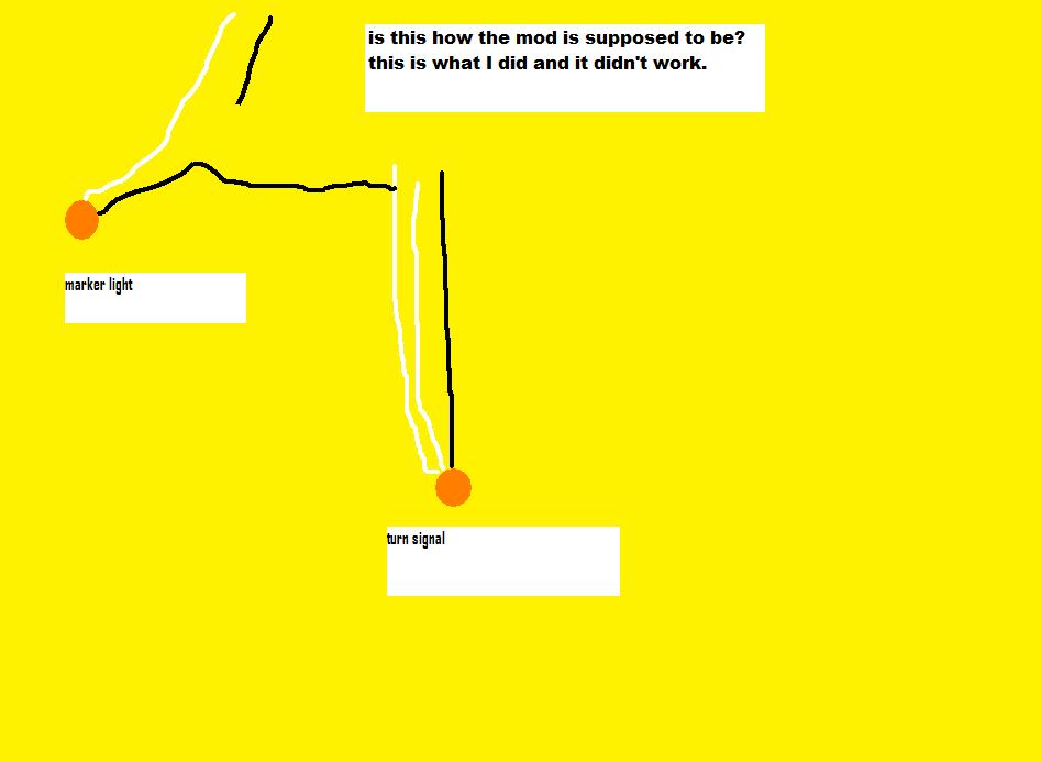 I followed your instructions, have only tried the right side. The turn signal up front doesnt work and the marker light is out completely. I cut the black wire from the marker light and tapped it into the outermost white wire and only had the rear turn signal at a fast blink. I unhooked it and it went back to working. What did I do wrong? I'm not the best at electrical, but I can follow directions, cut this and attach here. I want to do this but i must be doing something wrong. Can you help?The black wires are all ground wires, right? If so, how does taking a Ground wire away from a bulb allow it to still work? That;s basically what you're saying to do when people say to snip the black wire running to the side marker light.