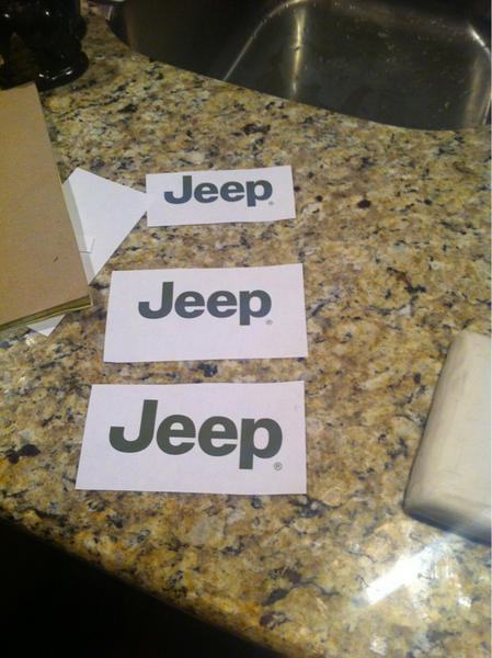 1. Took measurement and made a positive out of molding clay. I printed the Jeep logo off in several sizes and picked the one I liked best.