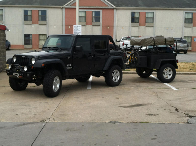 Here is my trailer build 48x54 box with a 48" tongue, 3.5k custom axle with 5-5 trailer hubs and spaced to fit jk wheels over dust caps. Used DIY fenders from sierra trailers and running 285r70r17 bfgs km2's. Trailer has a lift top and lockable tailgate. Made it mostly of 2x2 1/8th walled tube. Sided it with 22 gauge and Berliner...