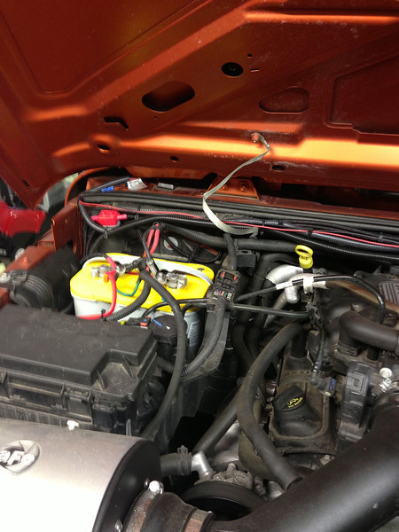 Step 3 - Was my temporary power wires over to my sPOD. The light has since been run with a water proof plug that hides at the under the top of the left mount. When I want to remove the light for long trips, or potential theft it takes only a few minutes to do so. The Red and black wires below run to my sPOD. As you can tell this is unlike the Rigid, as they give you exposed wires to do the installation with. You receive about 5 feet from the light.