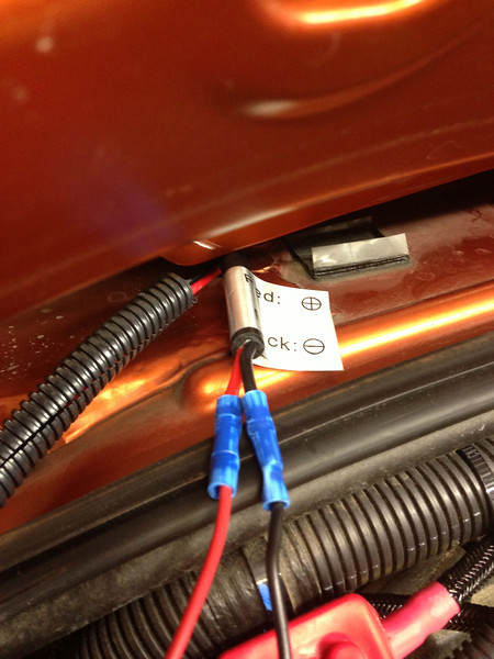Step 3 - Was my temporary power wires over to my sPOD. The light has since been run with a water proof plug that hides at the under the top of the left mount. When I want to remove the light for long trips, or potential theft it takes only a few minutes to do so. The Red and black wires below run to my sPOD. As you can tell this is unlike the Rigid, as they give you exposed wires to do the installation with. You receive about 5 feet from the light.