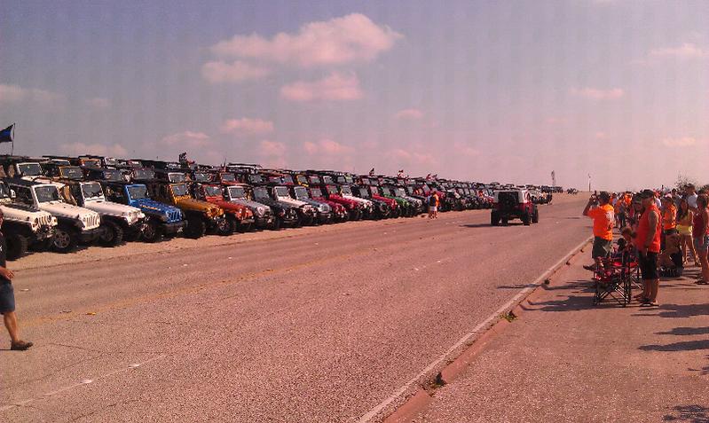 Man was that the shits! Holy cow that was some jeeps! I am counting from an educated guesstimate about 270 jeeps. I layed down and counted like 1080 tires ( not counting spares ) then divided by 4............ I was proud to be part of the pic. Met some new jeepers from all around my area. Ferry ride SUCKED. got us all seperated. Was on the ferry ride back with a 6.1 hemi jeep that wasnt in our group. Man it looked like a beast, very nice guy that owned it. Anyway off my tangent. Ran with budtest again, meet shag7265 and his friends. Ready to do something with the group again. Possible holly beach run? Anyway, had a blast!