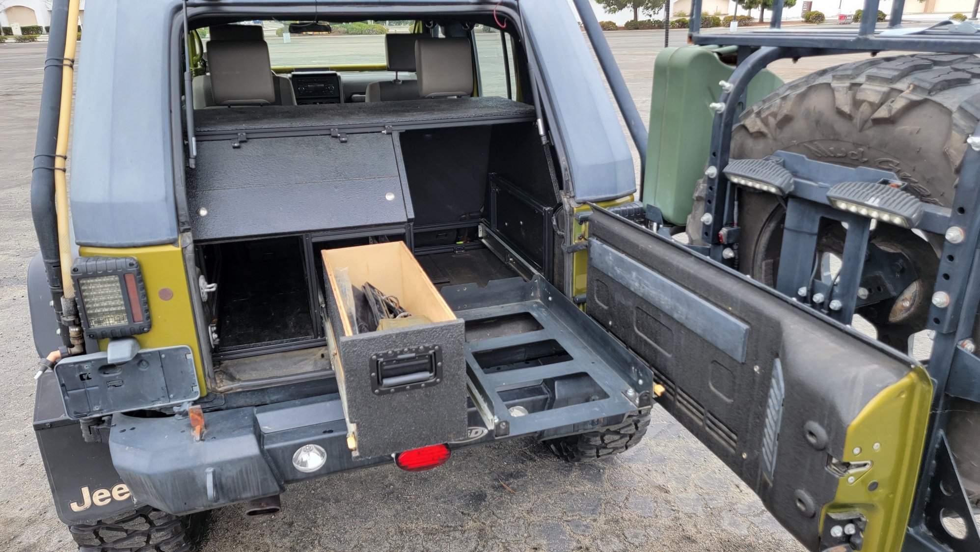 This extraordinary vehicle has undergone extensive modifications, transforming it into an off-road and rock crawling powerhouse. With its impressive enhancements, it's ready to conquer any terrain with confidence. Additionally, it boasts the versatility to embark on advanced overland journeys, equipped with essential features such as a fridge, roadshower, and custom storage in the cargo area.