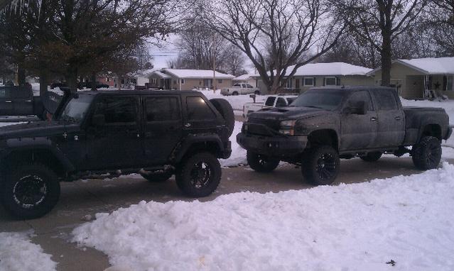 I see that. Lookin good Matt. Get much snow last week? Heard Iowa got what went through here wed night. Here's my jeep and truck after a few days of plowing through snow. Filthy! Plus got a lot of good use out my winch Thursday. Was pushing snow with bumper to get to people stuck. Proud of the ol girl. Haha