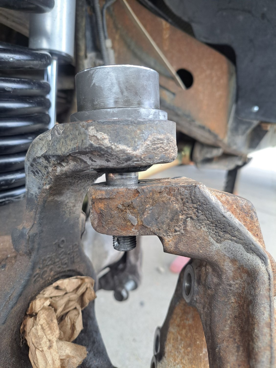 The problem I'm running into is the Upper joints, on both sides will not seat all the way into the knuckle. I removed the new upper on the right side and put the old one in for a test and the old one fits like it should. The new one on the left side stops with about an inch to go. That's after tightening the nuts.