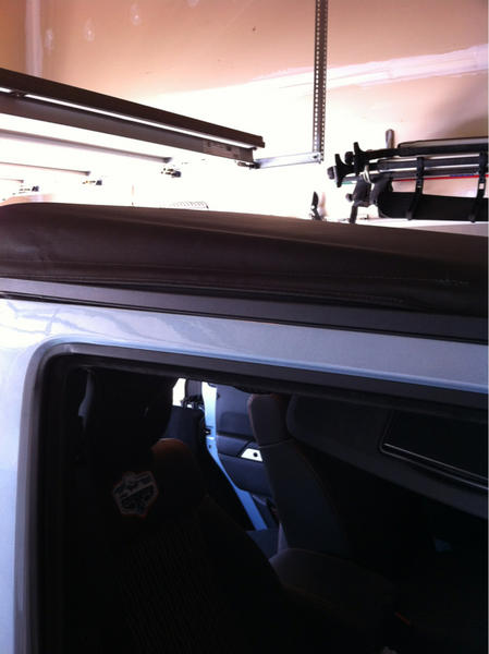 2)The top on mine looks about the same when closed as yours does in the picture from above. If you push that half that has a bunched up rubber seal down with your finger it will prevent a whistling wind noise at about 30 mph.