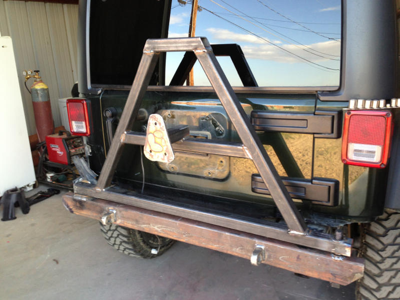 Here is what I have done so far. I still need to make a rack for above the tire and gas cans holders. I plan to make the rack and gas holder removable.