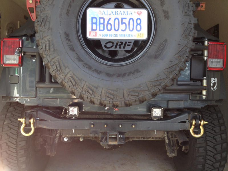 Not a great photo, and some bedlined filling is in the works- it looks unfinished with the gaping frame holes and factory tow hook... but better than a faded and mangled rear bumper. And I always am loading my 2 door down with camping gear food and drinks for 4 plus our kids and recovery gear, can see adding MORE weight.