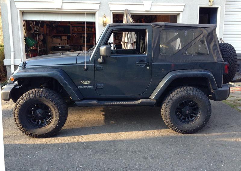 When I was looking to install a small budget lift, I could not easily find any before/after pictures of this setup, so this is more of a FYI for others. I just installed a Teraflex Leveling Kit and 18/59 springs and Rubicon Shocks. The ride is great and i definitely gained quite a bit of lift, i do not know the exact numbers but it is at least 3" in front and 2" in back. If anyone has 33x12.5x15 Duratracs on a stock 2 door sahara (i believe springs were 13/54??), please let me know your ground to fender height for front and back!