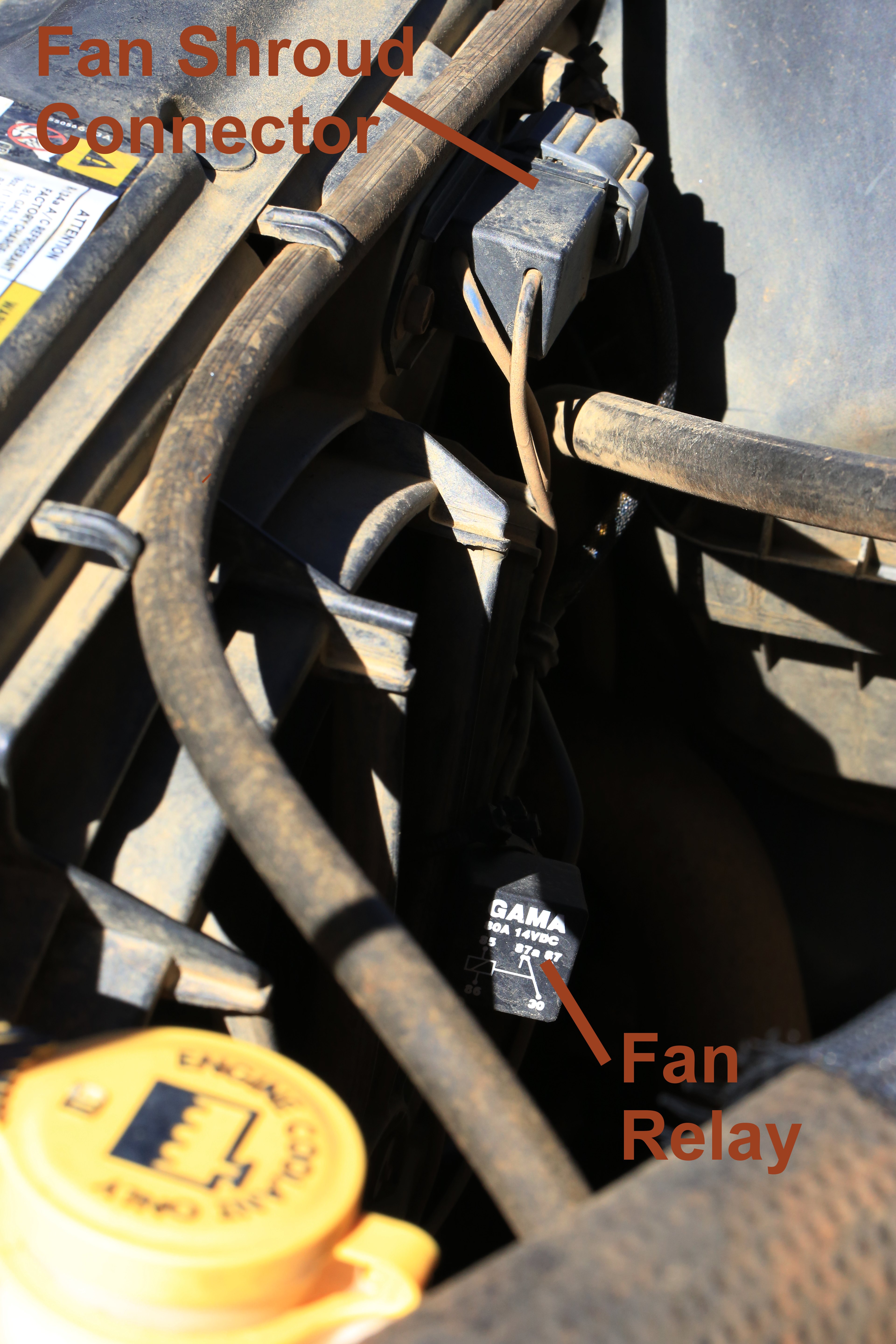 I attached the new relay to the fan shroud with some Zip-ties. I wrapped the connections with F-4 tape (Google it). Bear in mind that the relay I recommend comes with a couple extra heavy duty terminal lugs designed for its oversized pins.
