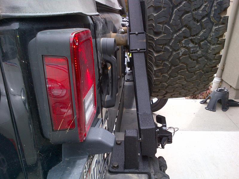Then I removed the tire stops, closed the tire carrier, measure the distance between the rear door to the tire stop bracket. I then added a little to it so the tire and the bracket were tight when closed so you get less shaking. I cut the tire stops with a hand saw.