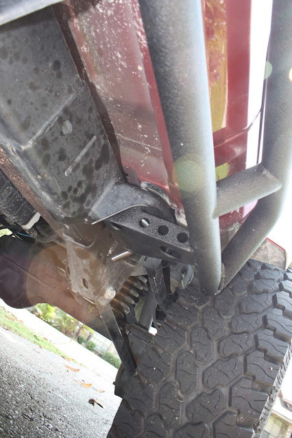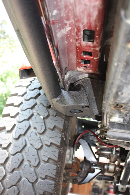 The Smittybilt website photo makes it look like they have three mounting points. They don't... just two. They don't have any flex when you jump on them, and I did use them to lift one side of the jeep using a floor jack. There was a little flex, but didn't come close to touching the body.