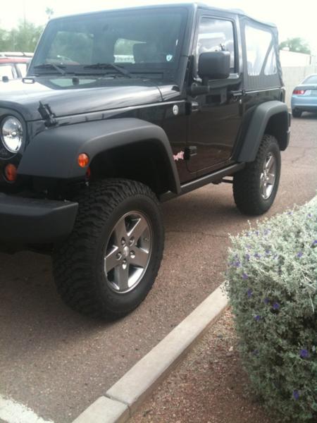 I have a 2 door soft top and put the 2.5 coil lift with new shocks. Awesome kit, easy install. I got an actual 3.5" of lift. 35s no problem. Still rides great. Here are some pics before the tires but after the lift.