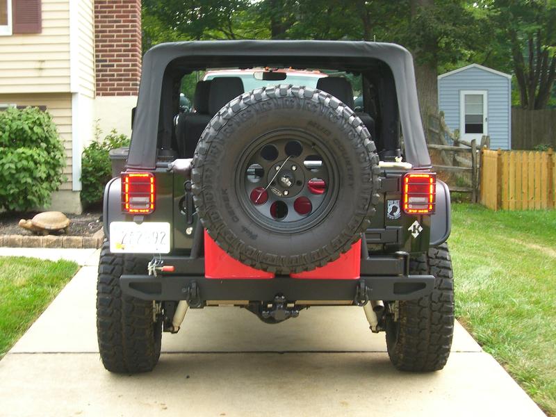 I'm looking into getting a rear tire and gas/jerry can carrier; specifically ones that carry the blitz type of gas cans. I've considered the ORFab and LOD gen3 rear carriers. I would get the ORFab, but after installing a stinger front bumper and the ORFab carrier, I'm not sure if my Jeep would even fit into my garage (length-wise). Also, I'm not exactly keen on that rear T-bar that holds down the spare. The LOD carrier is good, but I would have to install an entire new rear bumper; I was planning on keeping the stock one.
