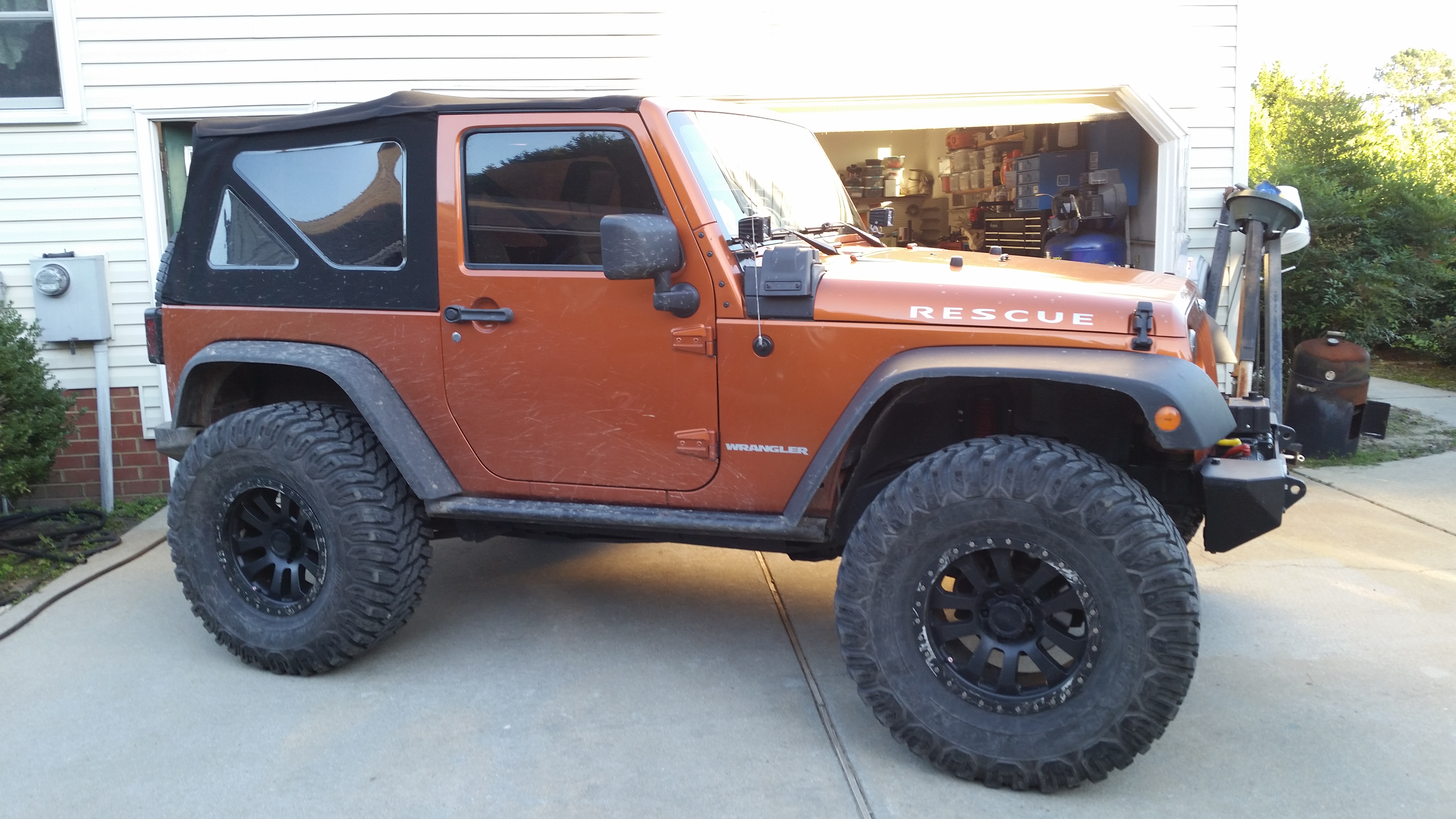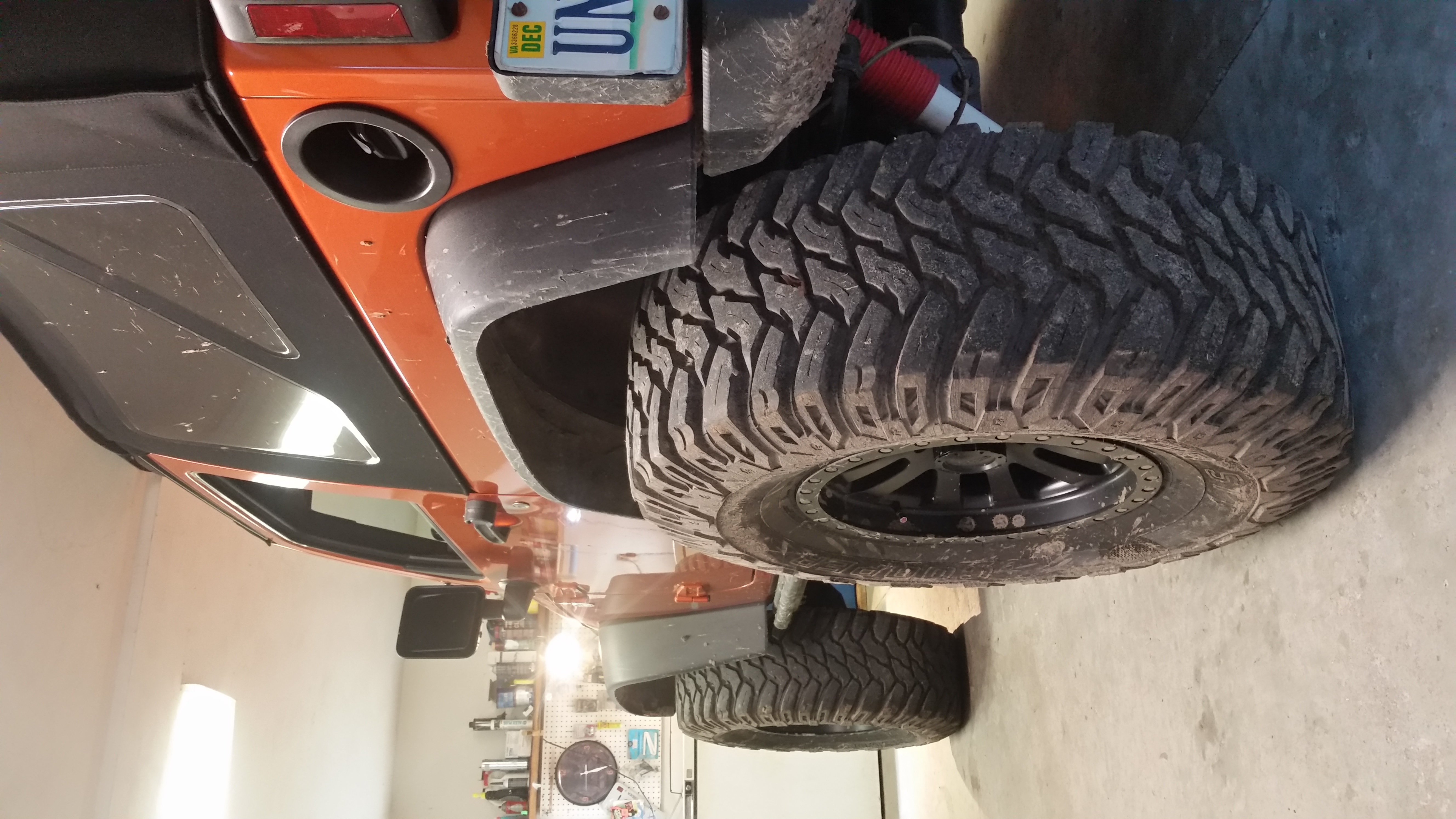 Anyway, I currently have 2.5 aev lift and now flats sitting on 285/70r17 if I remeber correctly, basically 32.5x11.5x17. I now have lots of empty space between tire and flares and have the bug to fill it up a little. I'm thinking about 35x12.5, but I'm quite positive 37x12.5 will fit, though I think that's a little overkill for me especially for my 2 door. I can freely admit I'm 90% an onroader as are most of us I suspect. I also kinda dig the new general grabber x3, the red letters just look awesome, and all Reputable competitors considered, they're not that expensive, cheaper in lots of cases. I'm rambling....four questions....