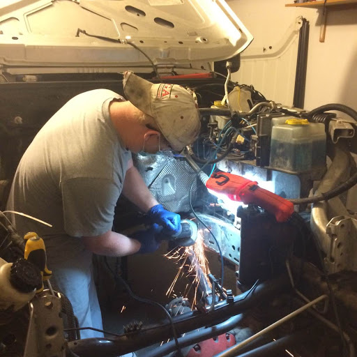 1. Cutting the old mounts off - I did not have a plasma cutter, but what I do have is the Harbor Freight 4 1/2" Grinder. You can use the HF 4 1/2" cut off wheels on the grinder to use it as a cutting tool. Worked very well. Just start cutting into them, make sure that you don't cut into the frame itself, just the mounts. Put the grinding wheel back on it to use it as a grinder again to smooth up the frame and clean it up. Eye/hand protection and a mask is a must. You will be sitting/crouching inside the engine back when you are cutting at it from different angles and the ground steel powder will get everywhere. Including your nose. It actually wasn't very difficult at all. It takes a little time, but after you get going, you will see it's pretty easy. Make sure to smooth up the frame rails and grind the paint off of the areas where you will be welding the mounts. I will tell you one thing I did find out... I am not a great welder. My welds are pretty ugly (and so are my dads), but after watching some youtube videos and purchasing the Harbor Freight 190amp MIG welder, I can at least say I got the job done. The install position for the 5.7 Hemi starts at 02:00 on the JSS video. Double..Triple.. check the positions based on the video prior to welding. "Measure twice, weld once". For the truck Hemi engines, the mounts are in the forward position (see video).